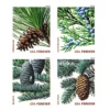 The U.S. Postal Service issued its first commemorative ???Forever??? stamp in 2010 with a Holiday Evergreens set of four. ?Pine cones and berries are shown from four different conifer (evergreen) trees ??C ponderosa pine, eastern red cedar, blue spruce, and balsam fir. ?Pine trees are frequently used for decoration in the holiday season months, a welcome splash of living greens during the cold, dreary months.