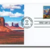 The stamp features Monument Valley and was issued for the $8.95 Priority Mail Rate.