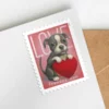 Design: The stamp features a kitten with its paws on a red heart against a yellow background. The design is derived from an oil painting on wood panel by Chris Buzelli, digitally edited for the stamp.